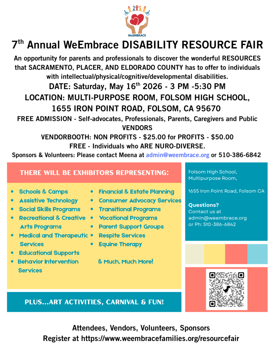This is an opportunity for parents and professionals to discover the wonderful resources that Sacramento, Placer, and El Dorado County has to offer to individuals with intellectual/physical/cognitive/developmental disabilities.