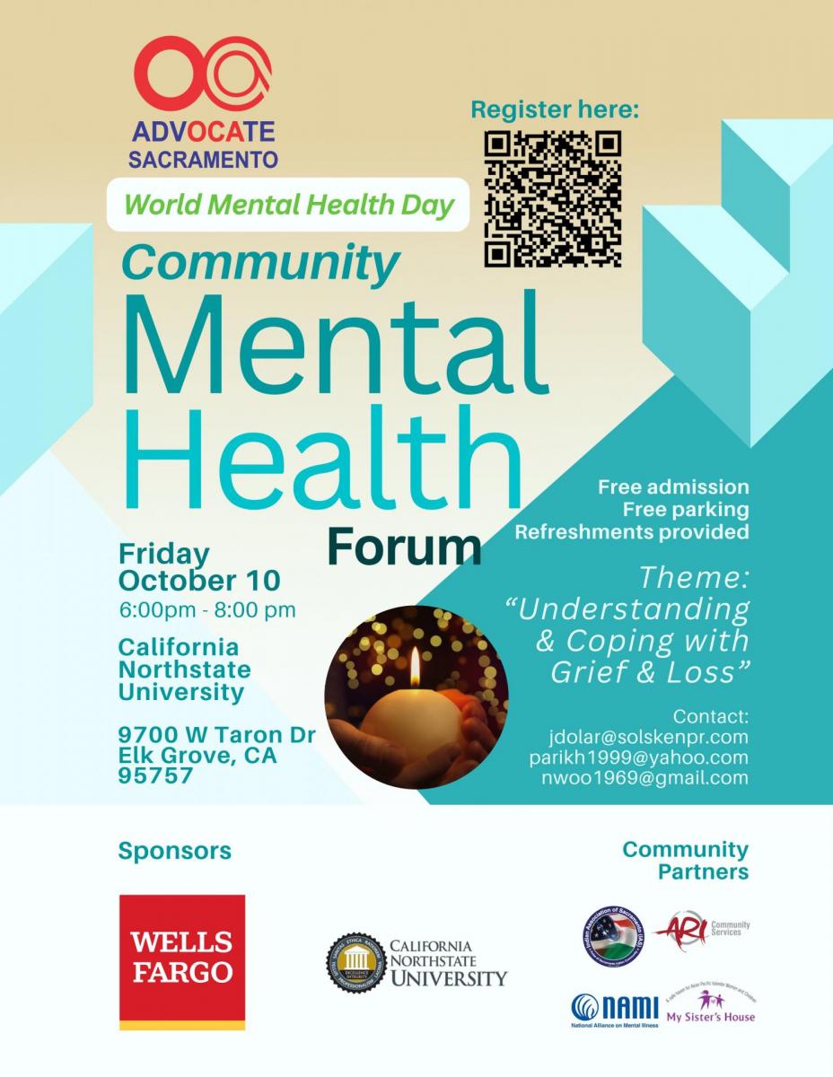 Join OCA Sacramento for World Mental Health Day on Friday, October 10 from 6:00 pm – 8:00 pm for an event forum on “Understanding and Coping with Grief and Loss.” Grief is not a sign of illness; it’s a sign of love. You’re not alone. Join us to connect, heal, and find strength.