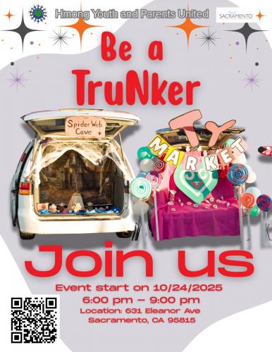 Join Hmong Youth and Parents United for Be a Trunker, a trunk-or-treat even on Friday, October 24, from 6:00 pm – 9:00 pm!